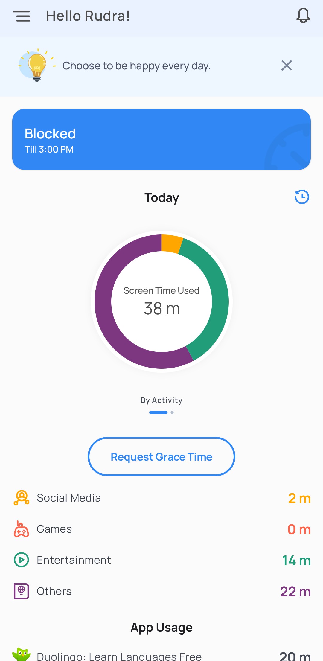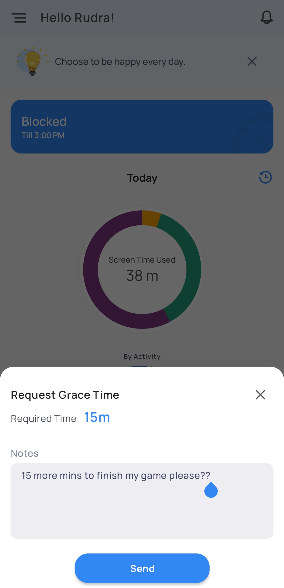 Good news! - you will be able to request your parent to allow some extra time by tapping the “Request Grace Time” button.